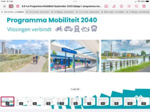 Voorzitter, het programma Mobiliteit geeft een mooi beeld van de toekomst weer. Een toekomst met een autoluwe binnenstad en plekken aan de rand waar onze heilige koe elektrisch gevoed kan worden.